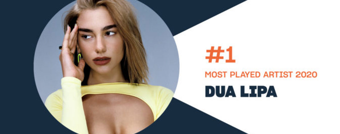 PPL, angleška kolektivna izvajalska organizacija, je objavila njihovo lestvico Največkrat predvajanih v letu 2020, na kateri je najvišje uvrščena Dua Lipa.